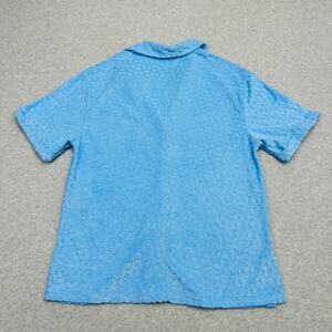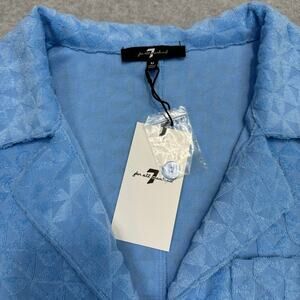 7 For All Mankind Women’s Top Size Medium – Baby Blue Colorway, Textured Terry Cloth Fabric, Relaxed Fit Button-Up Style, Cuffed Short Sleeves, Chest Pocket Detail, Soft and Lightweight Feel, Designed for Comfort and Ease, Perfect for Lounging, Resort Wear, or Casual Summer Looks.