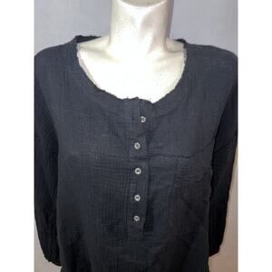 7 For All Mankind Top Women's L Black Oversized Long Sleeve Raw Hem Henley Shirt