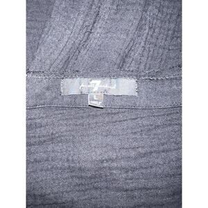 The 7 For All Mankind Top in Women's size L is a black oversized long sleeve shirt with a crew neck and pullover closure. Made from a blend of polyester and cotton, it features a gauze texture fabric and an adjustable raw edge hem. This stylish blouse is perfect for casual occasions and has a relaxed fit, suitable for year-round wear. With a garment care instruction of machine washable, it is easy to maintain and a versatile addition to any wardrobe, capturing themes of designer, hippie, grunge, bohemian, and gothic styles.