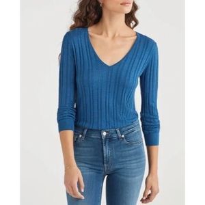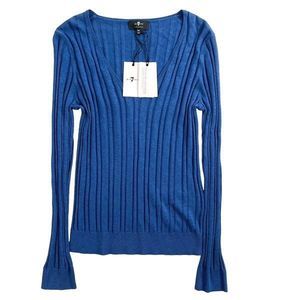 7 For All Mankind V-Neck Ribbed Long Sleeve Top Touch Of Cashmere Blue S NWT