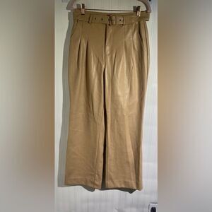 7 For All Mankind Vegan Leather Hi-Rise Belted Pants Cognac Sz S