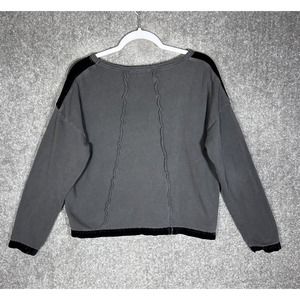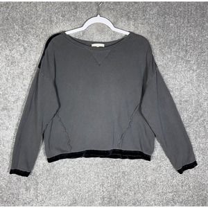 7 For All Mankind Velour Trim Raw Seam Long Sleeve Knit Top Womens Size Medium