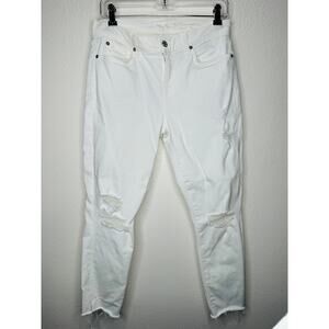 7 For All Mankind White Distressed Raw Hem Gwenevere Jeans 30