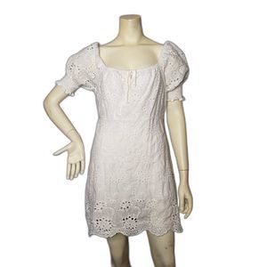 7 For All Mankind White Eyelet Lace Short Puff Sleeve Mini Babydoll Dress Size L