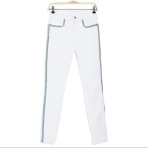 7 For All Mankind White High Waist Ankle Fringe Seam Skinny Jeans Size 26