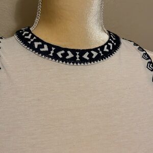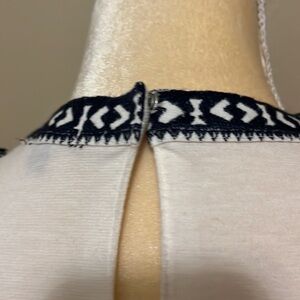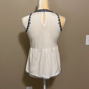7 For All Mankind White and Blue Embroidered Sleeveless Blouse. Size XL runs small (see Measurements). In excellent condition. No holes or stains.