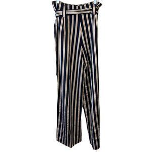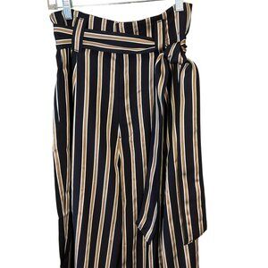 7 For All Mankind Wide Leg High Rise Navy & Gold Striped Paperbag Pants Med NWT