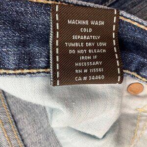 Stylish distressed denim Bermuda shorts with a relaxed fit, featuring iconic back pocket stitching and a durable cotton fabric for casual comfort.Material 100% Cotton, Good used condition, Lightweight, Light Wash, Wide Cuff, Capri, Made in USA