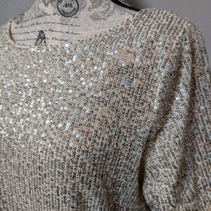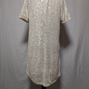 7 For All Mankind Women's Beige Silver Sequins Short Sleeved Dress Size Medium