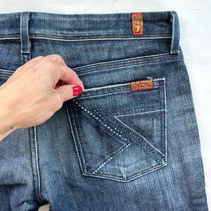 Stylish boot cut jeans by 7 For All Mankind. Dark blue color. Perfect for casual wear.