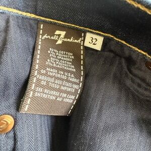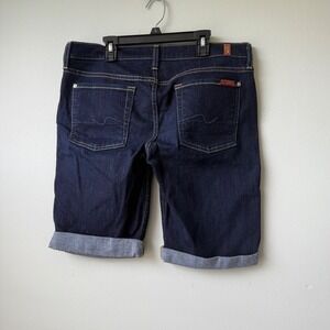 Keywords: 7 For All Mankind, denim shorts, bermuda shorts, womens shorts, dark wash, size 32, cuffed shorts, casual shorts, summer shorts, mid rise, five pocket, denim bermudas, womens denim