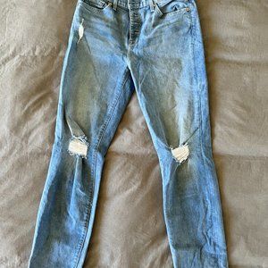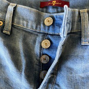 Check out these jeans: Straight Leg distressed ripped jeans by 7 For All Mankind. Originally priced at 228.00, but worth every penny for that trendy, edgy look!