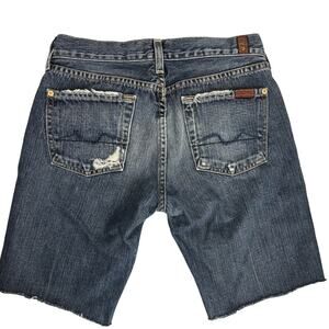7 For All Mankind Women's Distressed Denim Bermuda Shorts Raw Hem Size 26