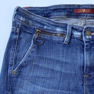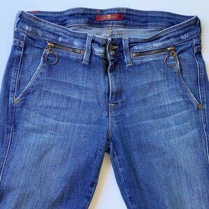 7 For All Mankind Women's Jeans with Raw Hem and Pocket Zippers with Ring Pulls.