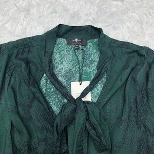 7 For All Mankind Women's Green Long Sleeve Blouse Size XS Runs Big NWT