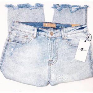 7 For All Mankind Womens High Rise Light Wash Distressed Cropped Jeans Sz 29 New