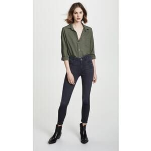 * A high-waisted, ankle-length skinny in our signature soft & light stretch denim—features a sophisticated dark wash, whiskering, tonal threads, and rose gold hardware