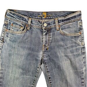 Keywords: 7 For All Mankind, womens jeans, size 29, bootcut jeans, denim, medium wash, classic, designer, USA made, stretch denim, casual, signature pockets