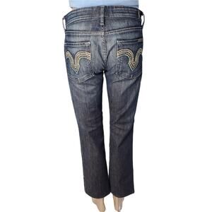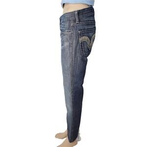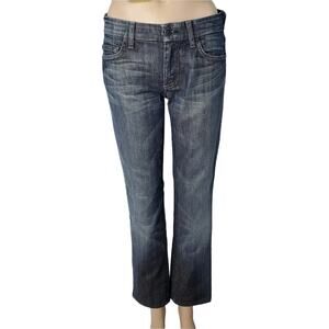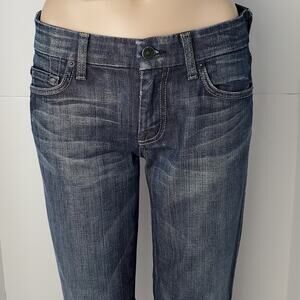 ITEM: 7 For All Mankind Kate Straight Leg Jeans - zipper fly, button closure, front/back pockets, whiskering/fading detail, embellishments on back pockets.