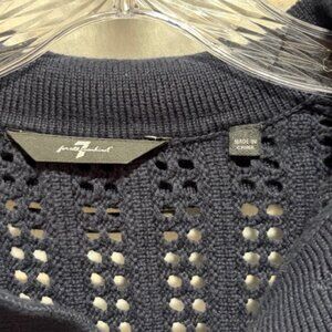 7 For All Mankind Women’s Large Navy Crochet Polo Cardigan Cotton Preowned