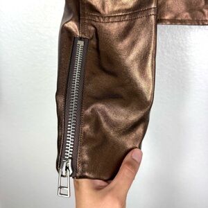 7 For All Mankind Women's Metallic Brown Leather Jacket size XS