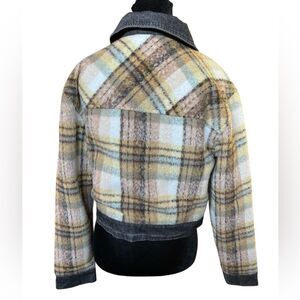 7 For All Mankind Women’s Plaid Cropped Jacket Size Small Denim Collar & Cuffs