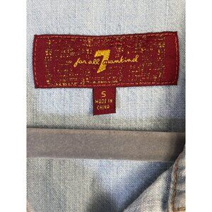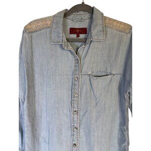 7 For All Mankind Womens‎ Shirt Size Small Chambray Linen Blend Blue Embroidered