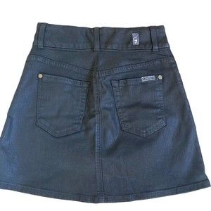 7 For All Mankind Women’s Size 24 Black Coated Denim Zip Front Mini Jean Skirt