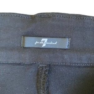7 For All Mankind Womens Size 24 Black Coated Denim Zip Front Mini Jean Skirt. Preowned in excellent condition