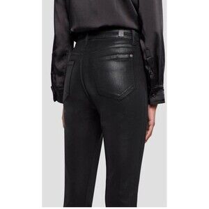 Brand new with tags 7 For All Mankinds Ultra High Rise Skinny Boot jeans in a sleek coated black finish. These are super flattering with a sculpting high-rise waist and just the right amount of stretch. The coated finish gives them a subtle leather-like look that can easily be dressed up or down.