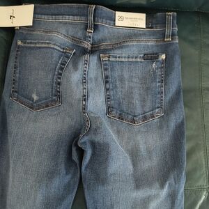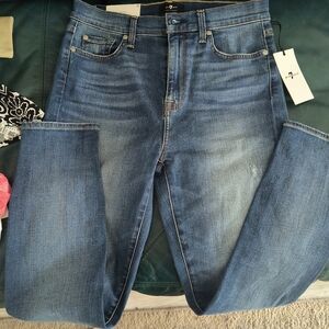 Stylish skinny jeans. Classic blue denim. Perfect for any occasion.7 For All Mankind Women's super Skinny Jeans - Blue 29 In NWT distressed