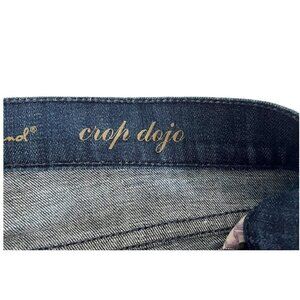 7 For All Mankind women's Dojo cropped dark wash jeans. These are highly coveted Dojo's with the stitched blue "7's" on the back pockets. Jeans are made of a cotton spandex blend and are a woman's size 27.