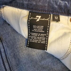 The 7 For All Mankind Women's Size 32 Dojo Flare Leg Jeans are a stylish and comfortable choice for any wardrobe. Made from denim fabric with a medium wash, these jeans feature a button closure, 5-pocket design, and a regular fit. The flared style adds a touch of flair to the classic blue color, perfect for summer, fall, and spring seasons. Lightweight and breathable, these jeans are machine washable and a timeless piece with a hint of y2k and 90s style.