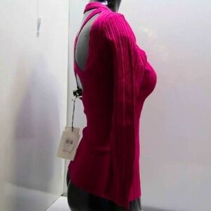 7 For All Mankind Women's US S Open Back Knit Top Raspberry NWT