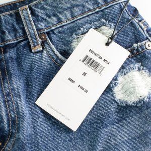 7 For All Mankind Wythe Blue Distressed Denim Mini Skirt Size 26 NWT