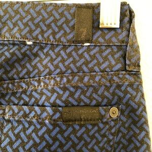 7 For All Mankind blue and black pattern mid rise denim size 25 never worn / has pocket / stretchy material/ has a light coating that gives it a sheen