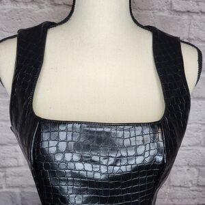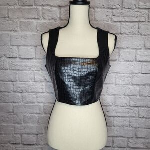 7 For All Mankind crop top black croc embossed vegan leather zipper back size S