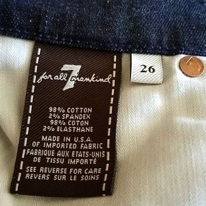 7 For All Mankind short length jeans, dark blue, 5 pockets, zip front, great condition.