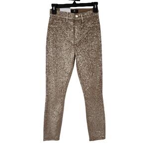 7 For All Mankind high waist ankle skinny jeans tan gold size 24 F2434