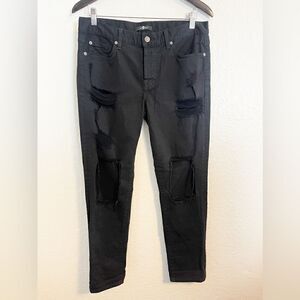 7 For All Mankind jeans Black Josephina Boyfriend Destroyed busted knee Jean 28