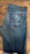 7 For All Mankind, size 30, blue denim jeans w/ pink rhinestones.