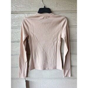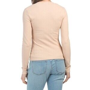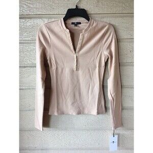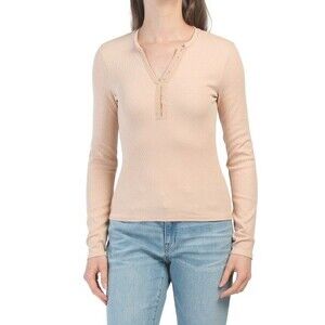 7 For All Mankind womens Ribbed Knit Top size XS Beige Fitted Long Sleeve Henley
