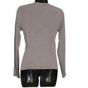 7 For All Mankind womens Ribbed Knit Top sz Small Grey Fitted Long Sleeve Henley