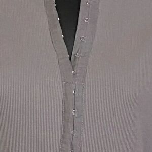 New with Tag, 7 For All Mankind women's Grey Fitted Ribbed Knit Long Sleeve Henley Top, size Small, V-Neck Pullover with Hook & Eye Closure, slim fit.