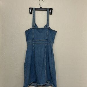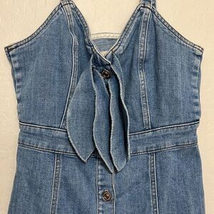 7 For All Mankind Blue Bow Button Front Contemporary Festival Denim Dress, size small, button closure.