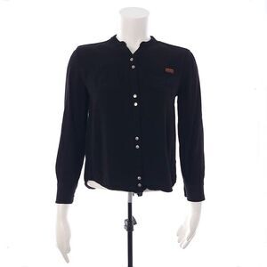 7 For All Mankind Solid Black Long Sleeve Snap Rayon Shirt Girls Size Large