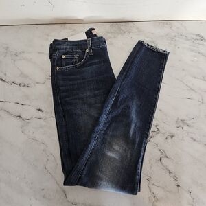 7 For All Of Mankind High Waist Ankle Skinny Leather Stripe Blue Jeans 30 NWT