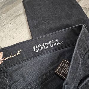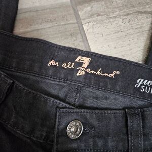 This is a pair of the Gwenevere style jeans by 7 For All Mankind in black. They are super skinny jeans and have embroidered back pockets, as shown in the photos.