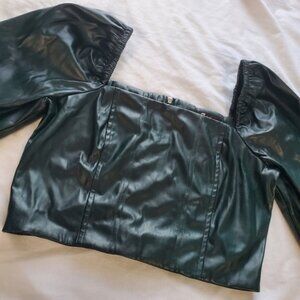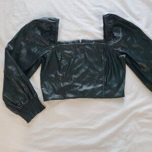 7 For Or All Mankind Green Square Neck Long Sleeve Faux Leather Crop Top