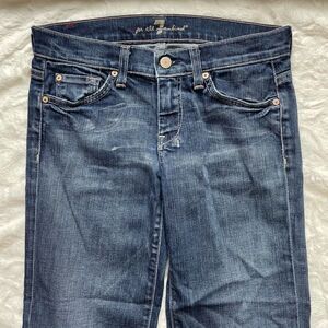 Straight leg dark wash dojo Capri jeans by 7 For All Mankind.